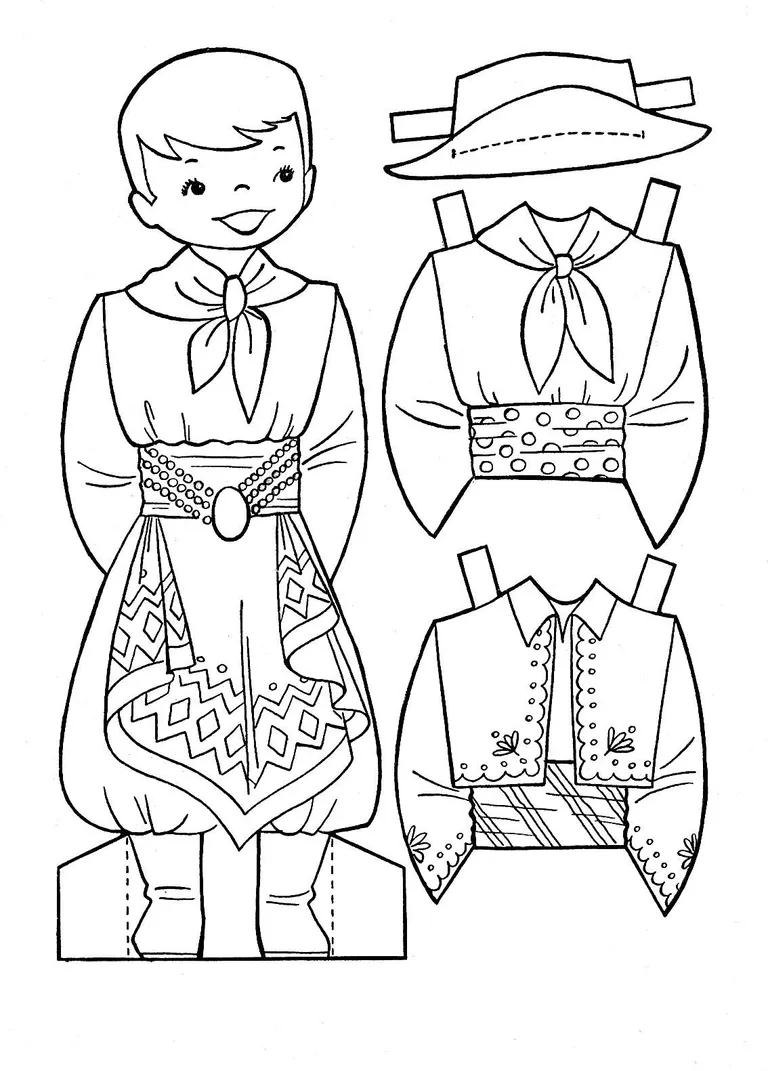 - Tạo một “sàn diễn thời trang”: Sau khi tô xong, hãy cắt các bộ quần áo ra và “mặc” thử cho các búp bê giấy.